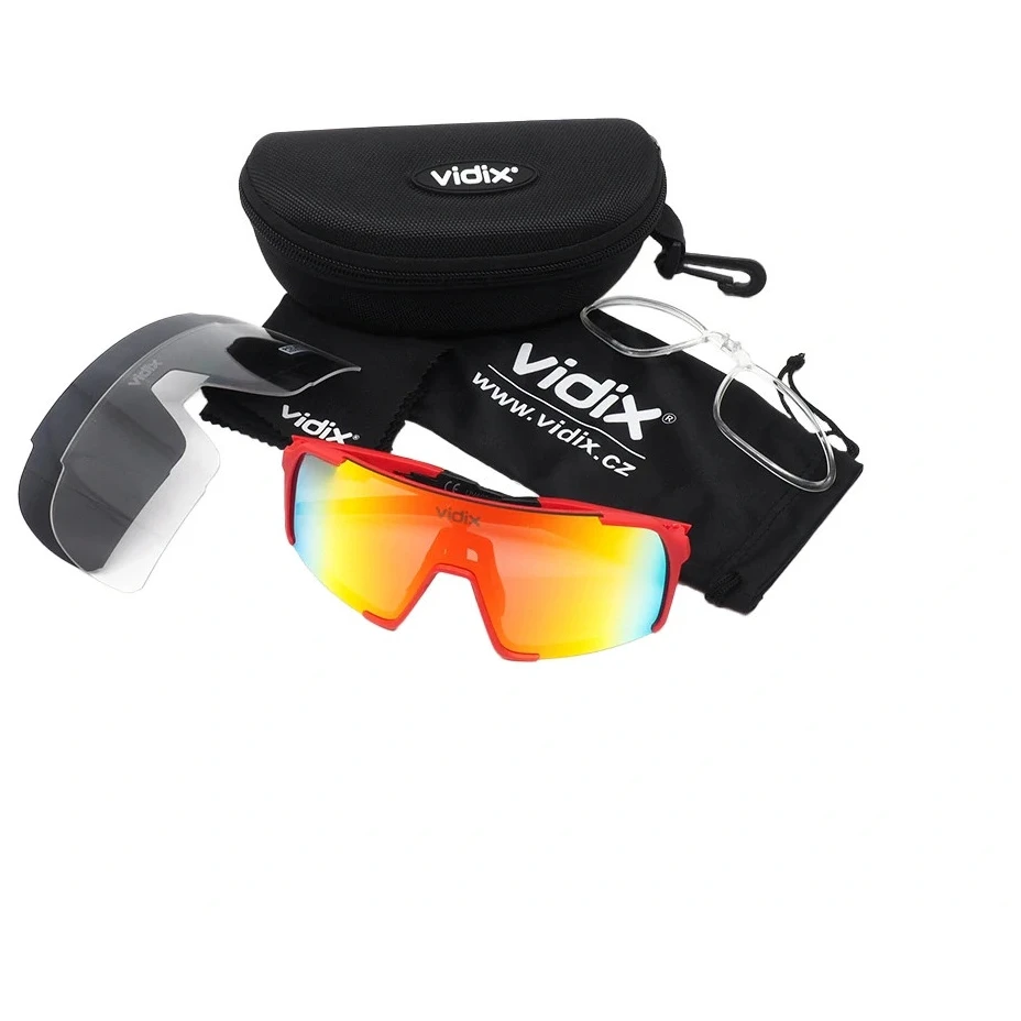 Неподвластните на времето спортни слънчеви очила Vidix VISION са изработени от качествени материали, така че да не ви подведат във всяка ситуация. За изработката на рамките е използван специален материал GRILAMID TR90, който ги прави много издръжливи и леки, с тегло само 19 грама. В комплекта ще намерите общо 3 козирки. Вашият избран цветен обектив CAT. 3, поляризационен обектив CAT. 3 и фотохромен обектив CAT. 0-2. Могат да бъдат закупени допълнителни обективи в други цветове. Всеки комплект включва също така вложка за диоптрична леща, микрофибърна чанта, кърпа за почистване, твърд калъф и test поляризация.