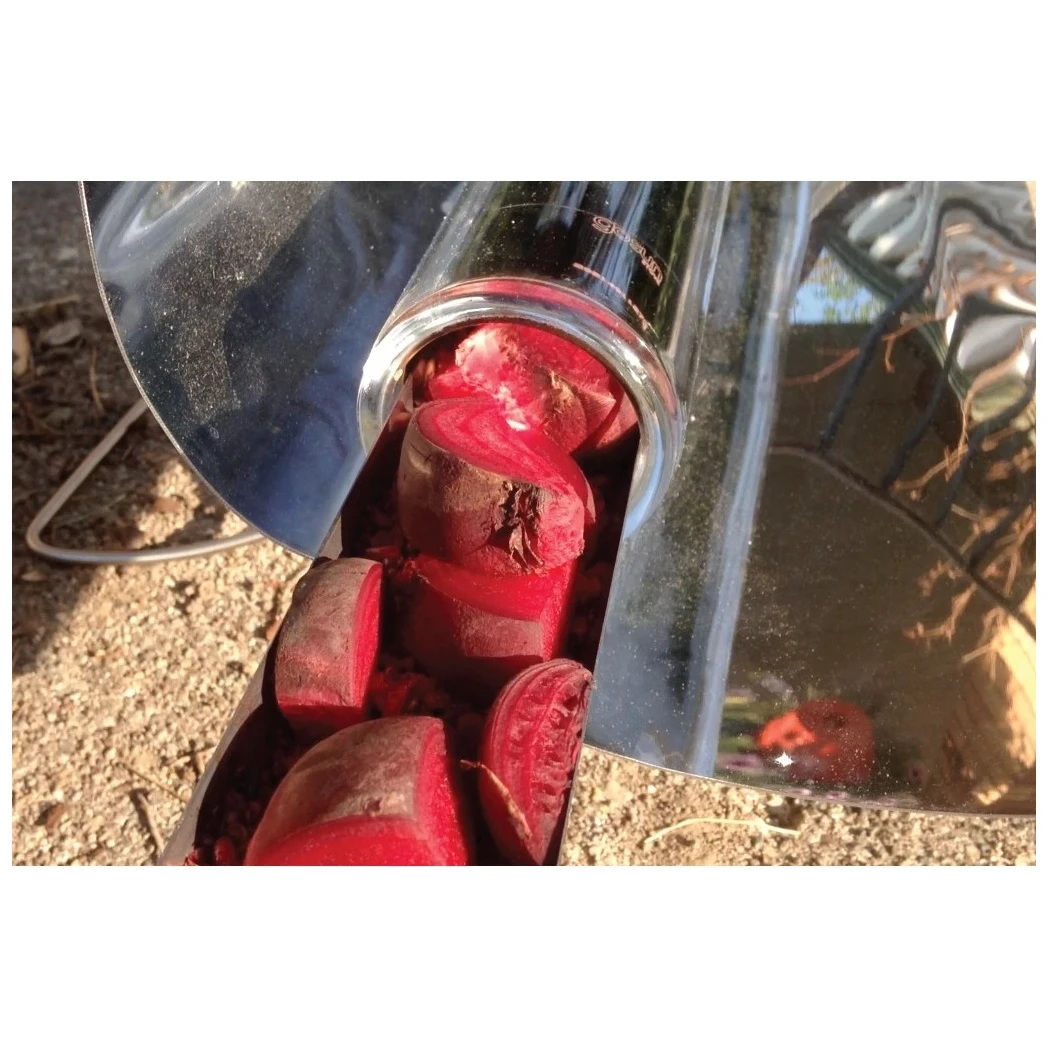 Стандартната опаковка включва издръжлива камера за готвене с форма на тръба от боросиликатно стъкло, два параболични рефлектора, които могат да се навиват на руло, за да предпазят тръбата като черупка, купа за готвене от неръждаема стомана, малък почистващ модул с грапава повърхност, прикрепен към края на купата, ръководство за потребителя, брошура за готвене и дръжки от неръждаема стомана.
