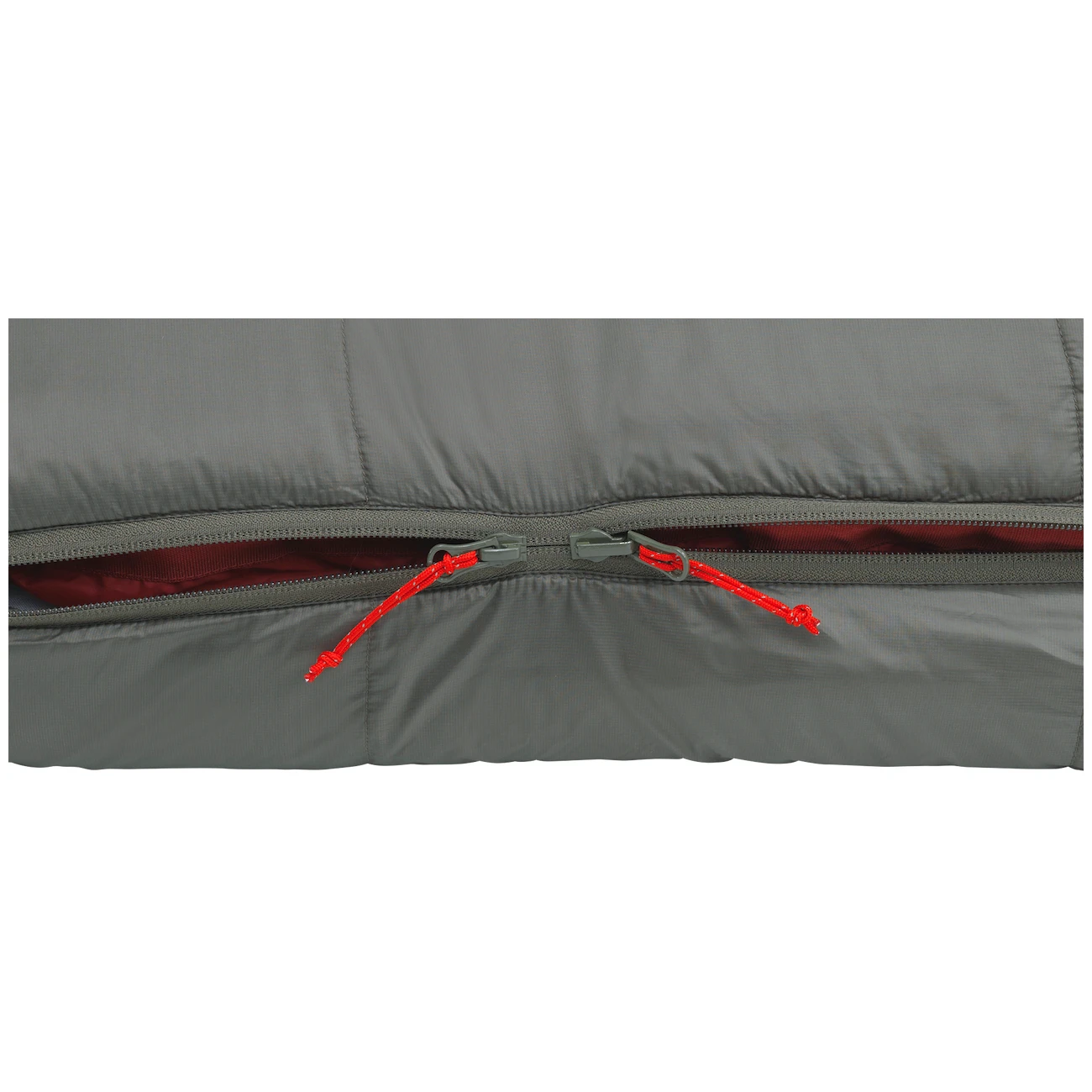 Разбира се, има двупосочен цип YKK, който може да издържи на движение напред-назад през целия живот на спалния чувал. Ципът е с покриваща лента срещу загуба на топлина и защита срещу нацепване. Можете да изберете страната на ципа, така че спалните чували да бъдат съединени. В случая с този спален чувал това е левият цип.
