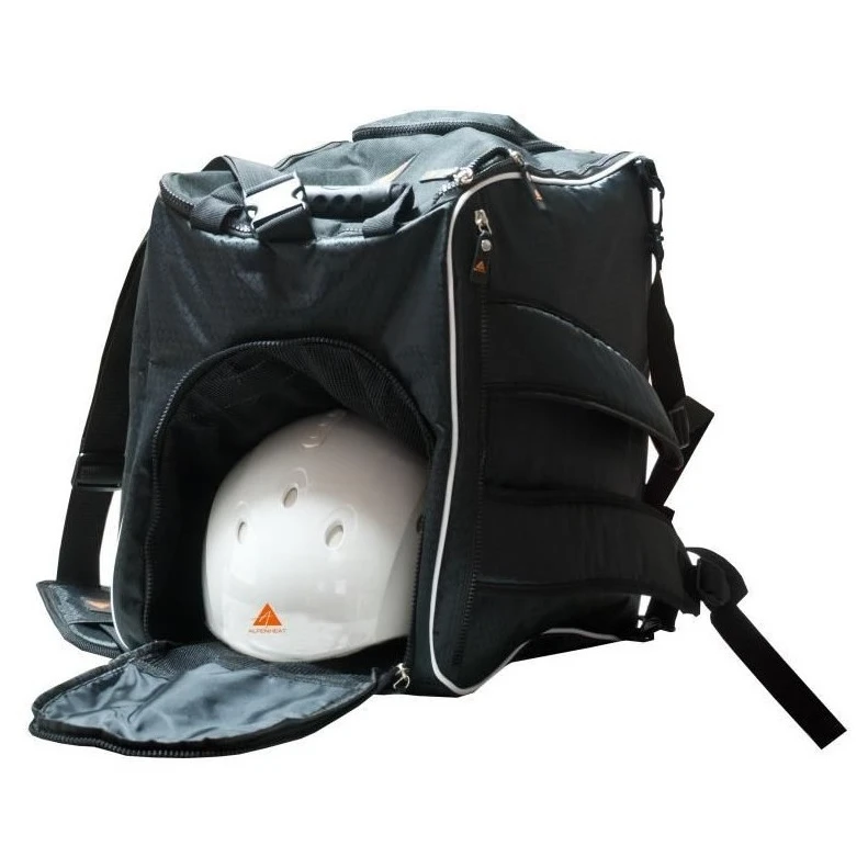 Спортната чанта с подгряване Fire Boot Bag от марката Alpenheat надеждно изсушава обувки, ски обувки, каски, ръкавици и друго оборудване. Захранване от класически контакт или адаптер за кола.