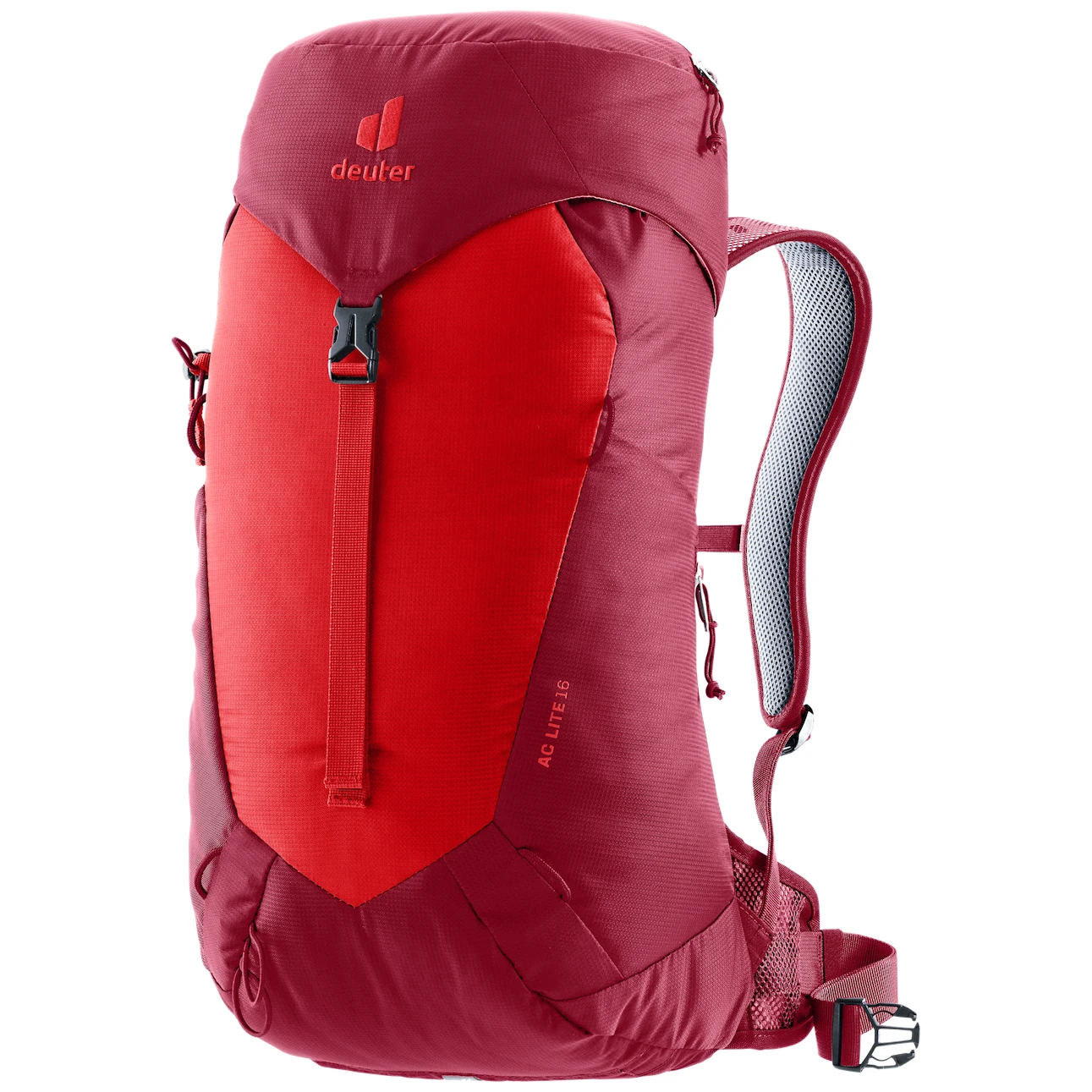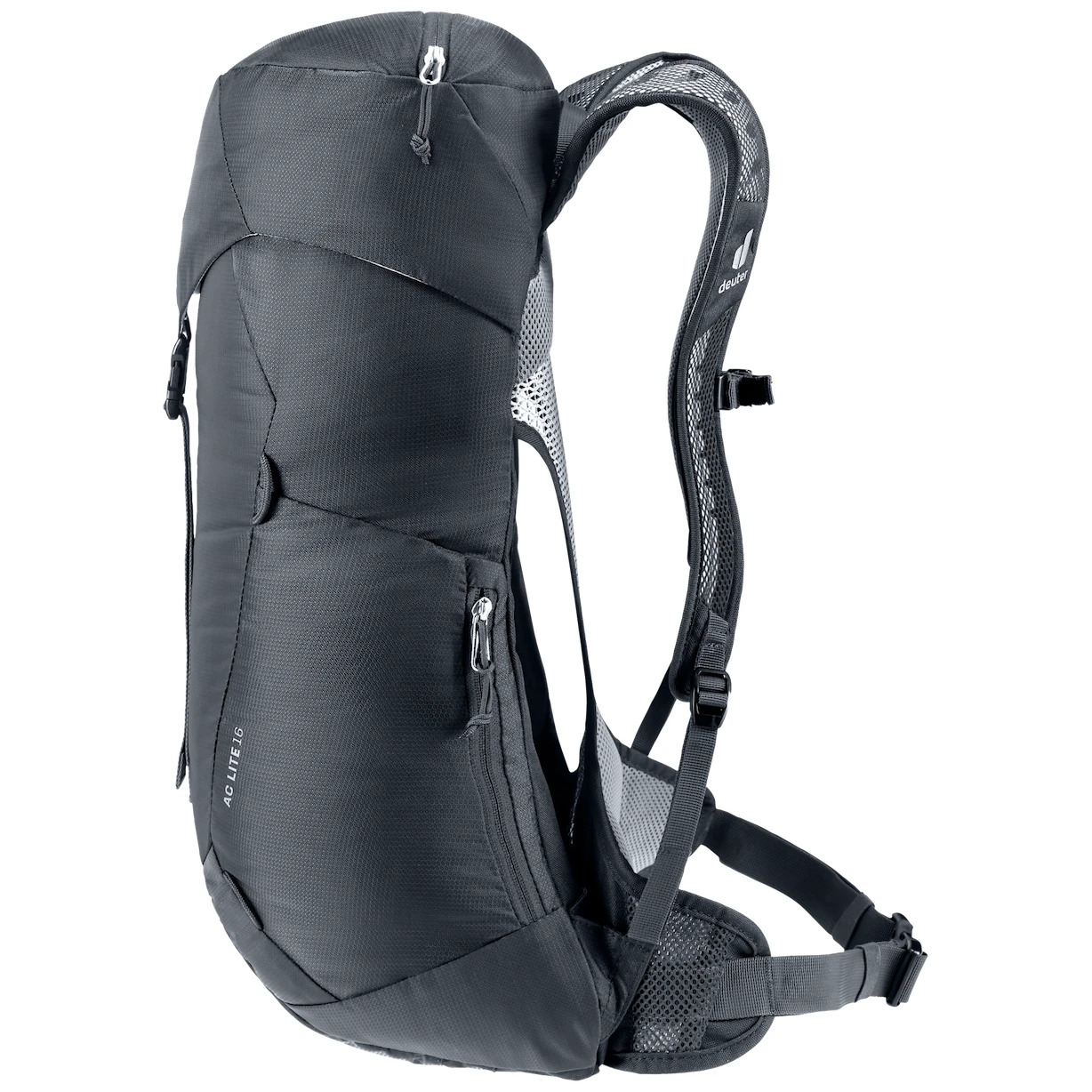 Туристическата раница AC Lite 16 на марката Deuter е много лека, дишаща и удобна. Системата за гърба Aircomfort с мрежа осигурява максимална вентилация на въздуха и оптимално разпределя натоварването благодарение на металната рамка. Регулируемите колан за кръста и гръден колан поддържат раницата на място, както и подплатените презрамки.