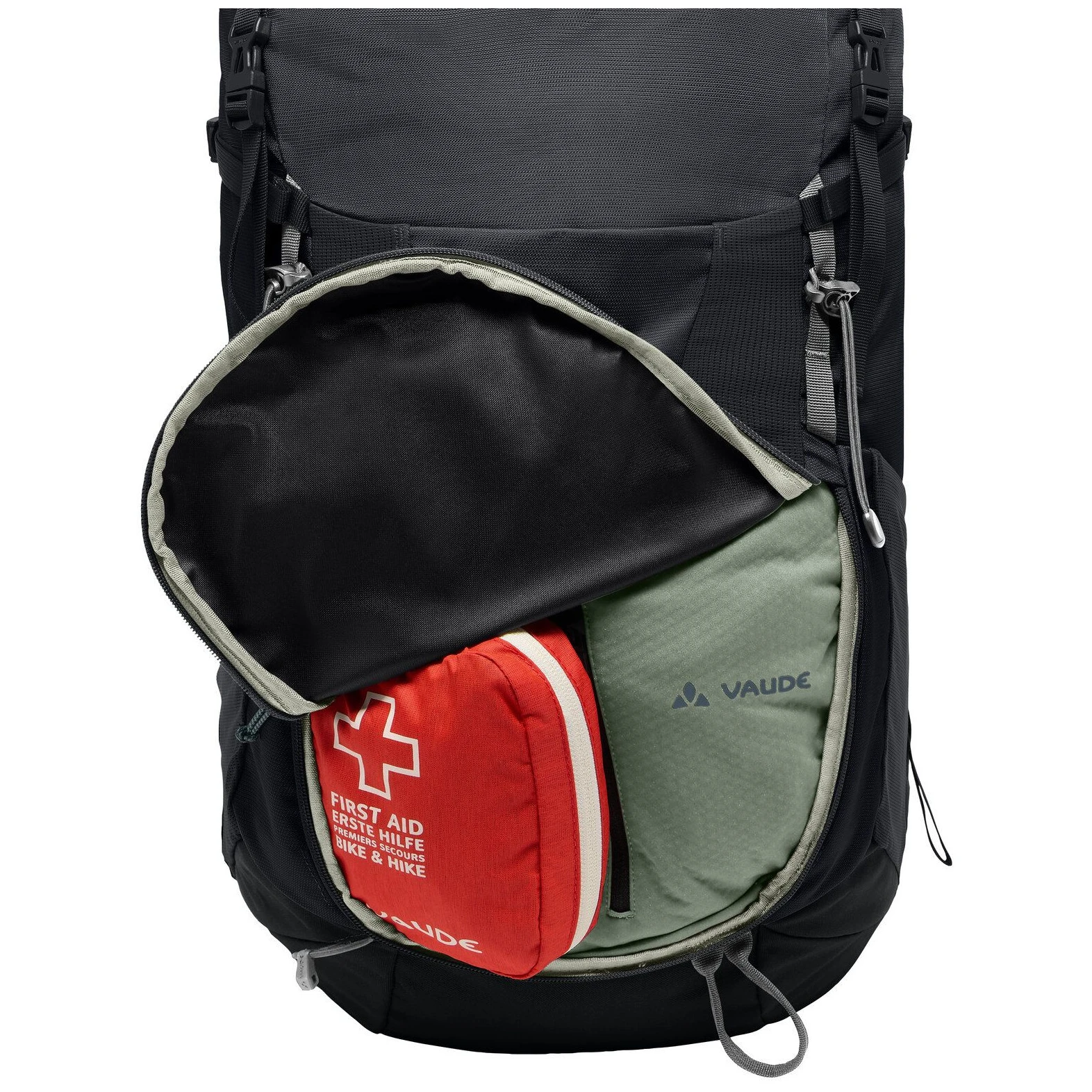 Компресионни ленти осигуряват стабилно задържане на товара във всяка ситуация при носене. Раницата има едно основно отделение с капак, което е допълнено от редица практични джобове и примки, например джоб за ценности, просторен еластичен джоб отпред, примки за трекинг щеки и пикел, отделение за хидратираща система, външни странични джобове за бутилки с напитки и интегриран дъждобран. Достъпът до основното отделение се осигурява допълнително от цип отпред на раницата.