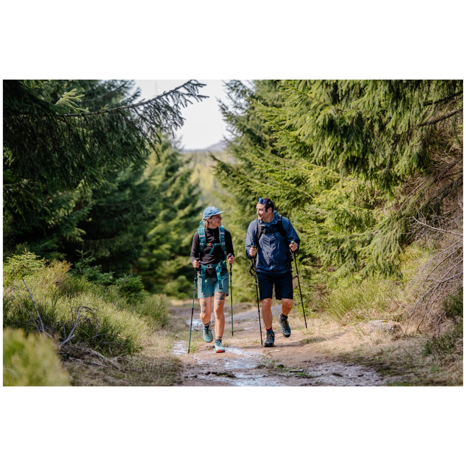 Щеките са оборудвани с дръжка с коркова ръкохватка, която приляга удобно в ръката, абсорбира добре потта и осигурява комфорт дори при по-трудни изкачвания. Нейната удължена дължина позволява бързо прехващане при изкачване или на пресечен терен, без да е необходимо да регулирате дължината на щеката – идеално решение при честа промяна на наклона на маршрута. Безшевната регулируема каишка позволява приспособяване точно според вашата ръка и намалява риска от натъртвания.