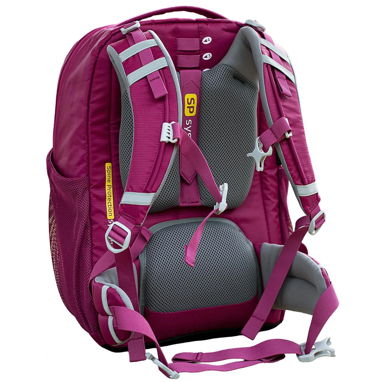 Системата SP гарантира здравословно носене на раницата и свежда до минимум негативните въздействия върху гръбначния стълб. Други предимства са удобните презрамки, ергономична конструкция с колан за кръста, която поддържа здравословното развитие на детския гръбнак. Лумбалната подложка е изработена от проветрива и удобна 3D мрежа. Има и гръдна каишка, която може да се регулира по височина и дължина.