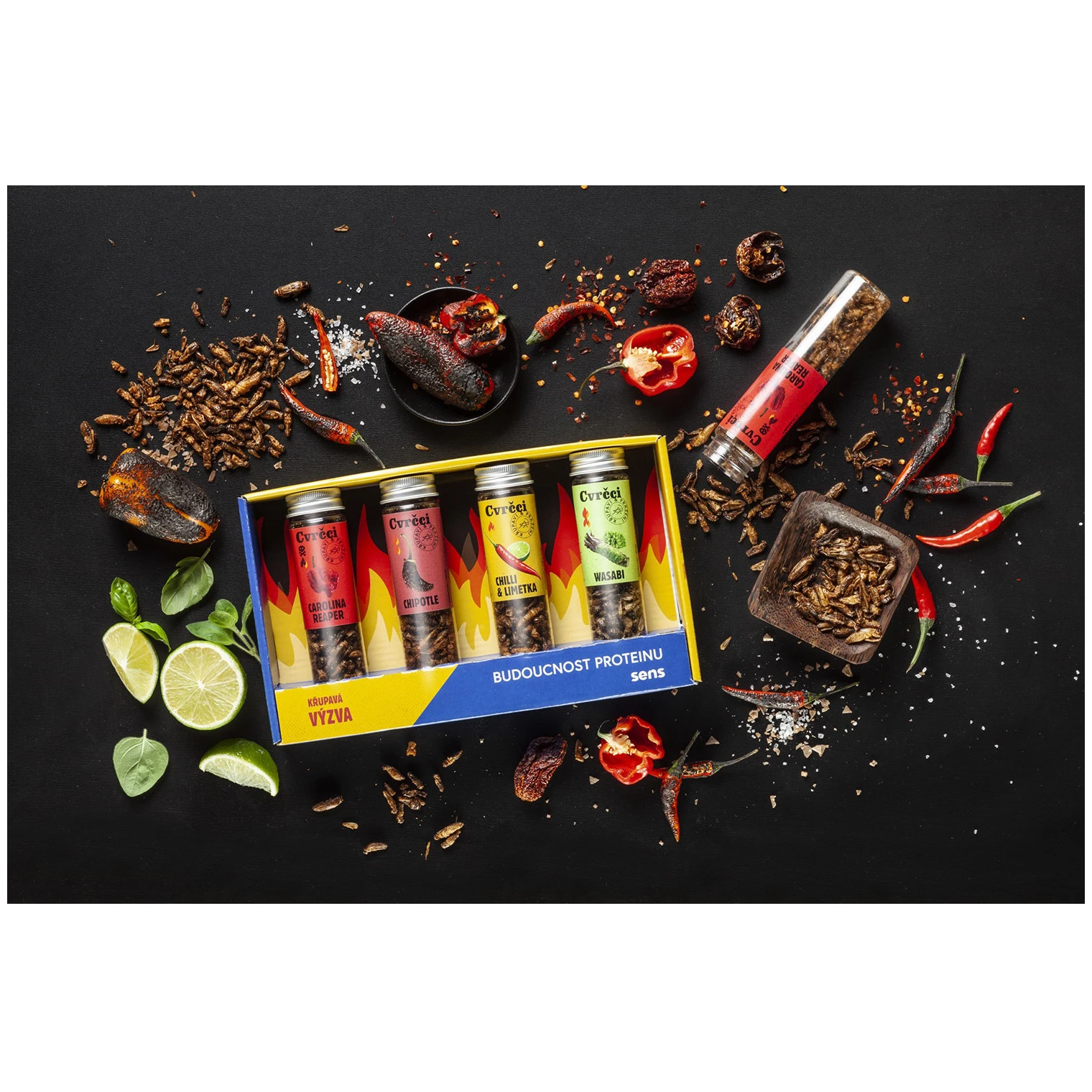 Хрупкави и печени щурци с пикантен вкус на чипотле в забавна тубичка от Sens. Опитайте ги за себе си или изненадайте близките си на празник с необичайна закуска.
