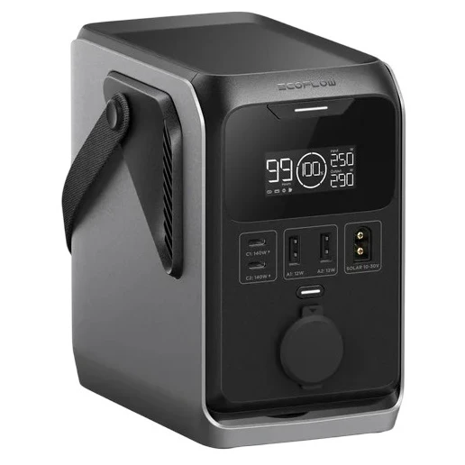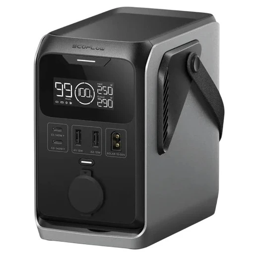 - зареждане през USB-C, 12V автомобилен контакт и соларни панели EcoFlow (макс. 30 V)